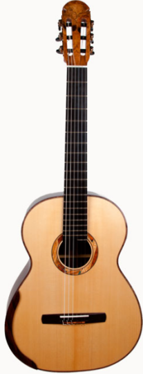 A l'origine construite pour un de ses clients réguliers, Rémi, cette guitare était sensée répondre à mon besoin d'un instrument classique susceptible d'être joué avec des mains handicapées par le tremblement essentiel. Son manche avait une largeur au sillet de 43 mm, ce qui est quasiment la largeur au sillet d'une guitare électrique. Je m'en séparai à regret à une période où ma préoccupation principale était de trouver un remède à mon problème de santé, en France ou à l'étranger. Jean-Marie FOUILLEUL est un luthier admirable et je ne peux que vous inviter à vous intéresser à son travail.
